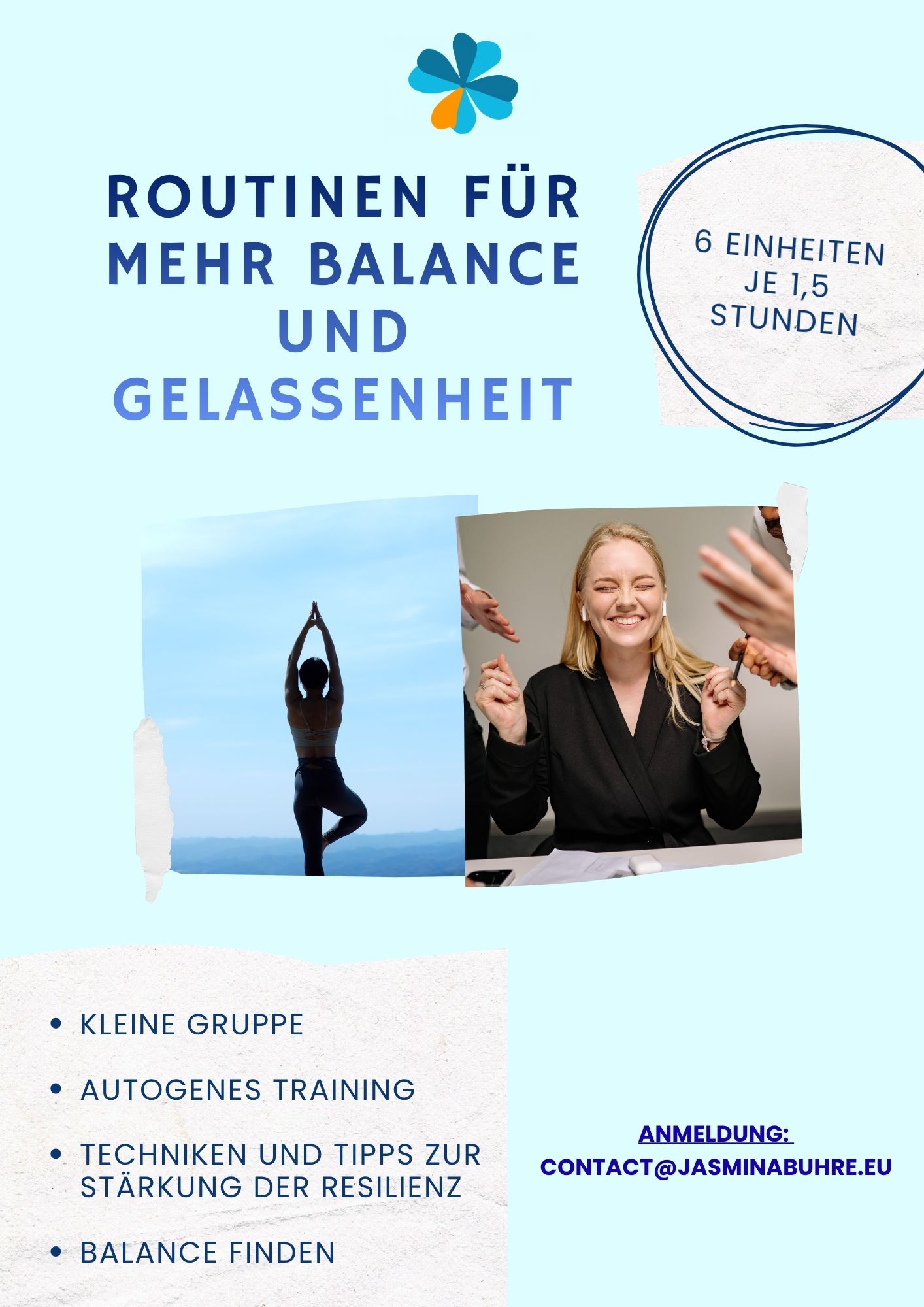 Kennenlernen, Ausprobieren und Üben. Lass dich in Entspannung hineinführen. Du lernst verschiedene Entspannungstechniken und einfache Ritualen, die dir helfen deine Widerstandskraft und mentale Gesundheit zu stärken. Du lernst auch wie du das leicht im Alltag integrieren kannst. Du kannst jederzeit einsteigen!